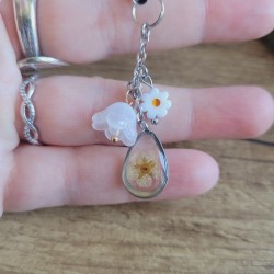 • un pendentif cadre goutte (1.7 x 1 cm) renfermant une véritable fleur de Spirée séchée, cueillie dans le jardin,