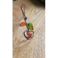 • un pendentif cadre coeur (2 cm) renfermant une véritable feuille séchée de Géranium Herbe à Robert, cueillie dans le jardin,