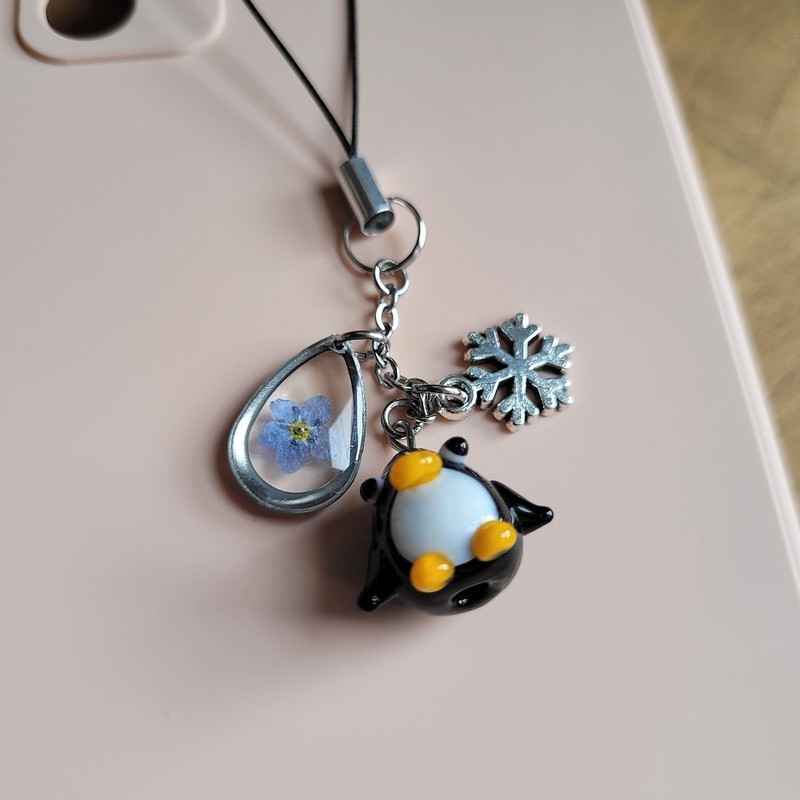 Réalisé à la main dans mon atelier, il associe une dragonne en fil noir et une chaîne en acier inoxydable, solide et résistante, pour accompagner votre téléphone au quotidien.