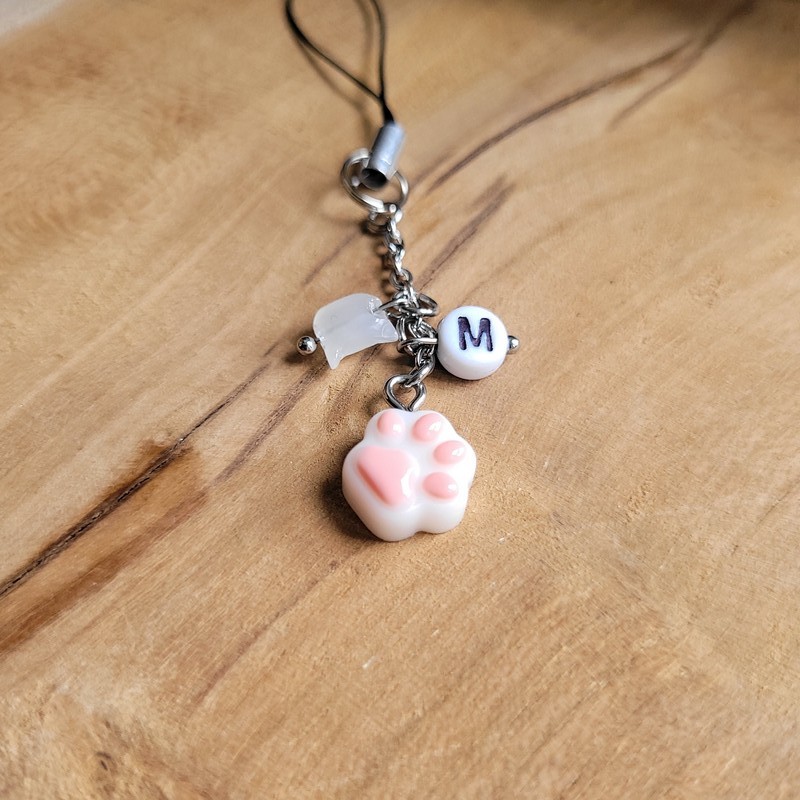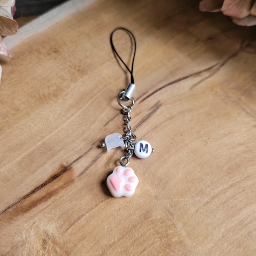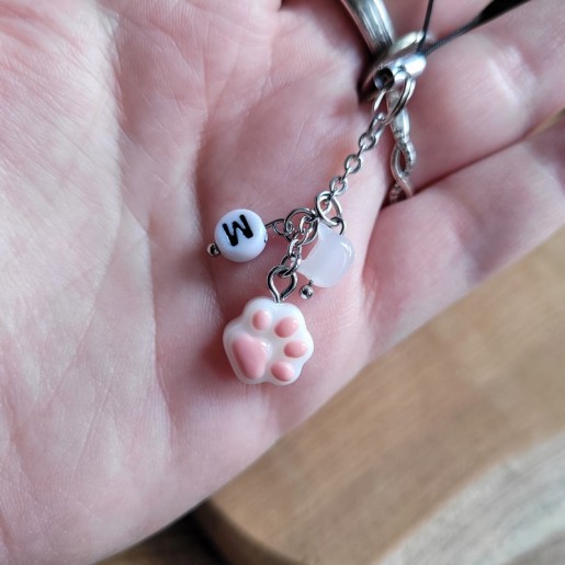 • un pendentif pattoune (1 cm) avec coussinets roses en résine, réalisé par mes soins.
