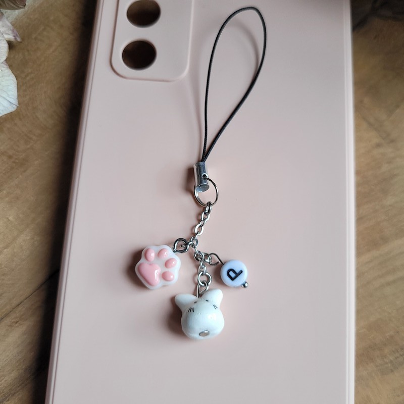 Réalisé à la main dans mon atelier, il associe une dragonne en fil noir et une chaîne en acier inoxydable, solide et résistante, pour accompagner votre téléphone au quotidien.