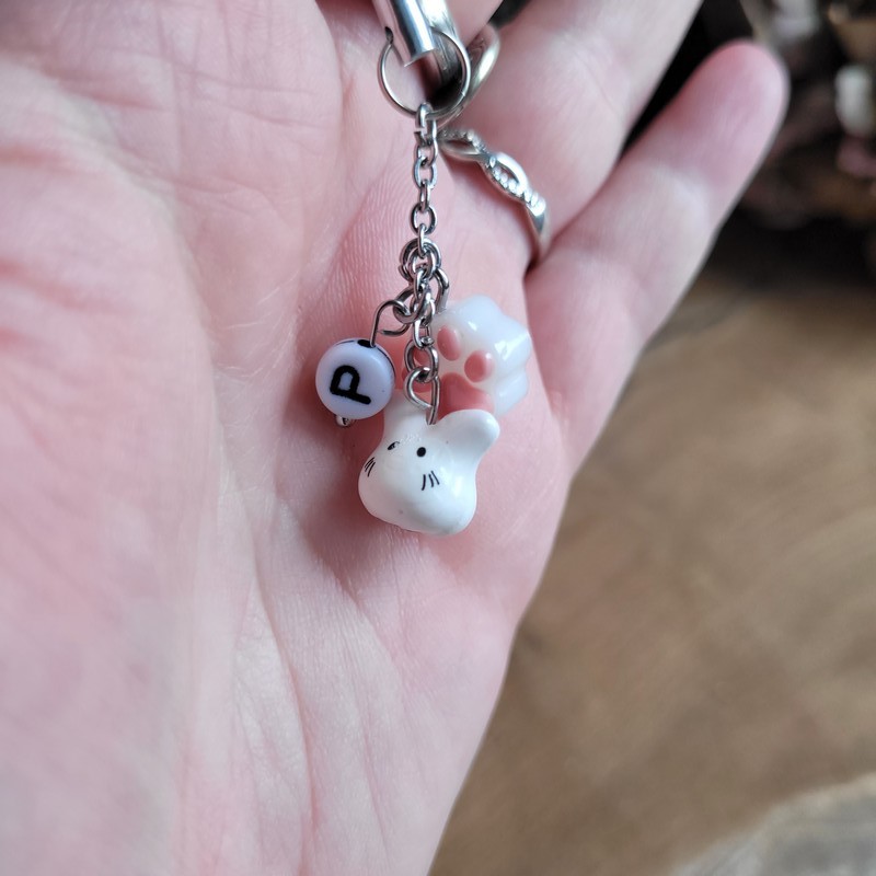 • un pendentif pattoune (1 cm) avec coussinets roses en résine, réalisé par mes soins.