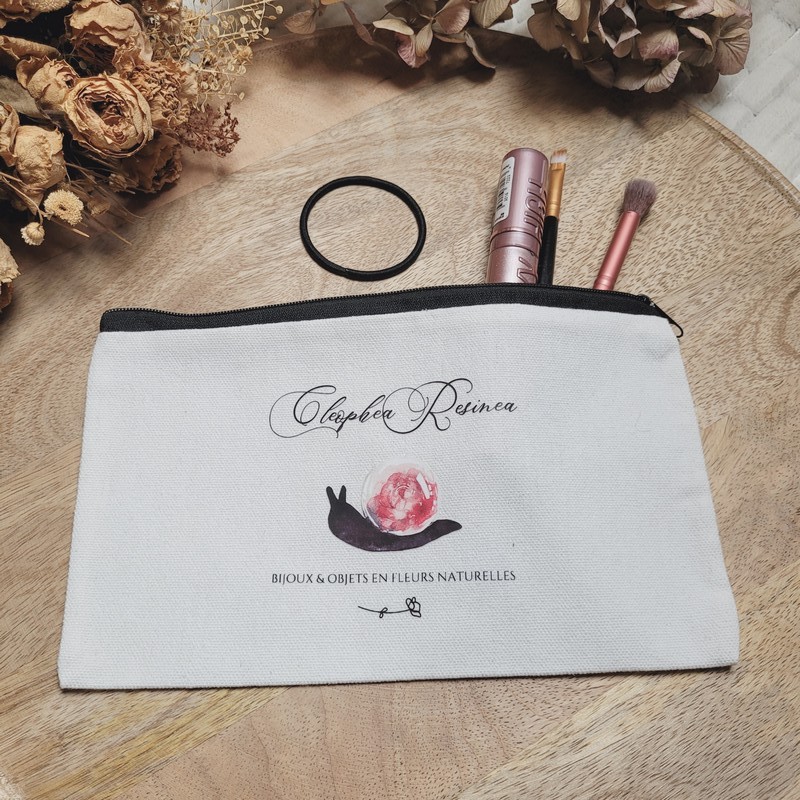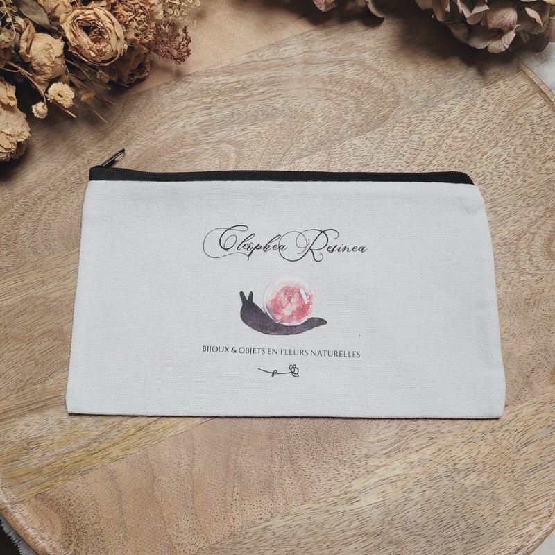À la fois pratique, élégante et intemporelle, cette pochette en tissu beige avec le logo imprimé CleopheaResinea est un indispensable du quotidien.