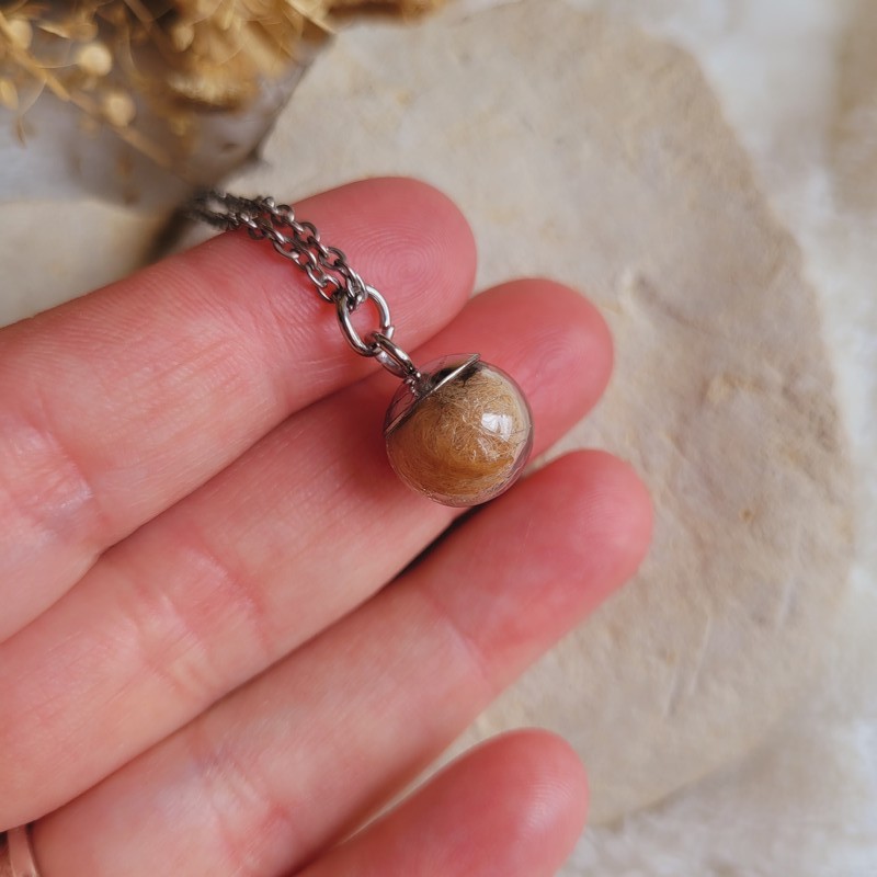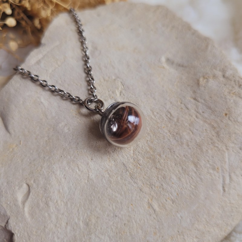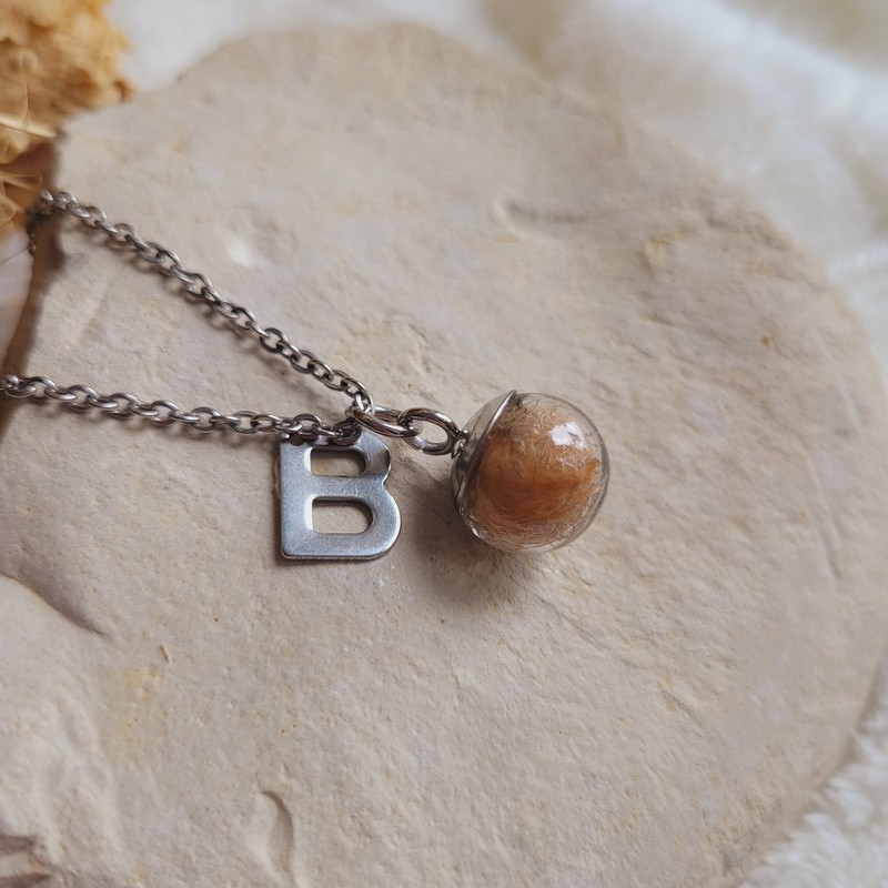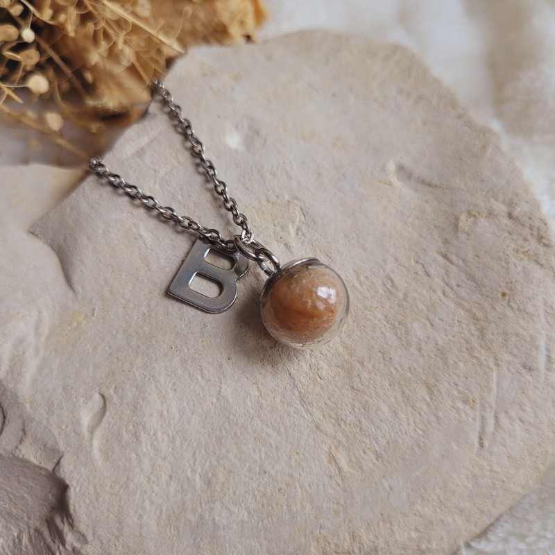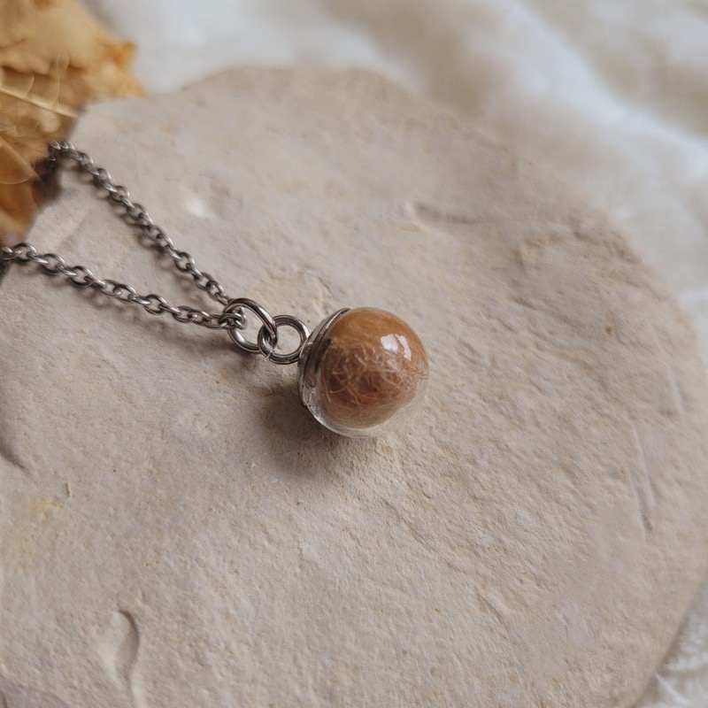 Collier souvenir sphère 2 cm personnalisé – Mèche de cheveux, poils ou fleurs