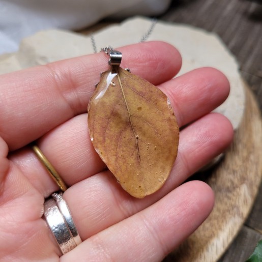 • Matière : feuille naturelle séchée, cristallisée par de la résine transparente