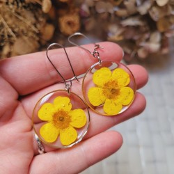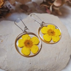 Boucles d'oreilles rondes avec fleurs séchées de Bouton d'Or.