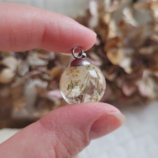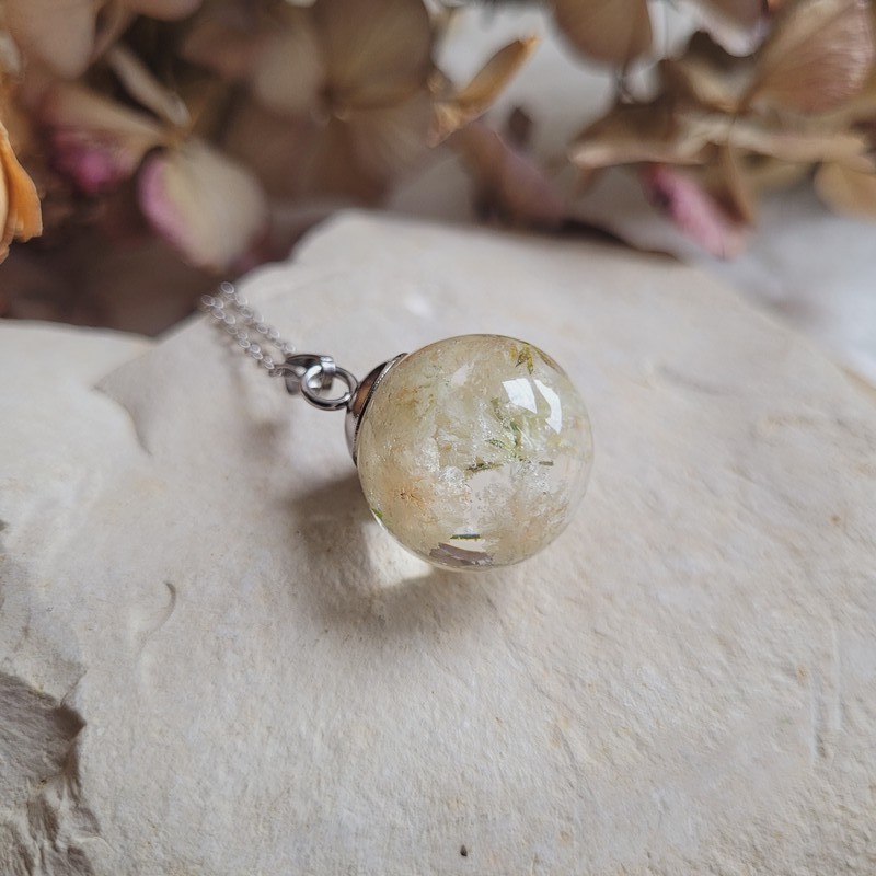 Ajoutez une touche de poésie et de naturel à votre style avec ce pendentif sphère unique. Idéal comme cadeau ou comme pièce spéciale dans votre collection de bijoux !