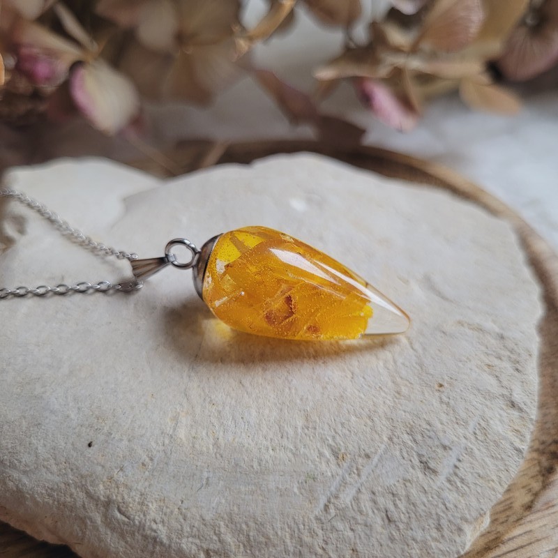 Ajoutez une touche de poésie et de naturel à votre style avec ce pendentif unique. Idéal comme cadeau ou comme pièce spéciale dans votre collection de bijoux !