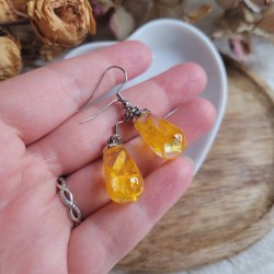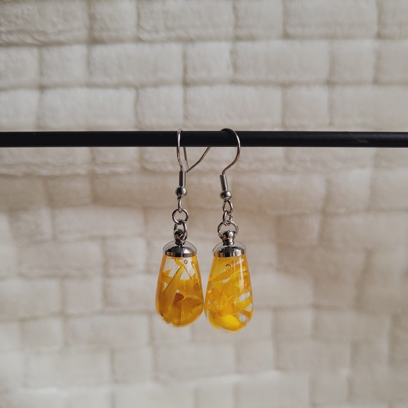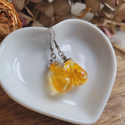 Chaque larme en résine, renferme des fleurs séchées d'Immortelle jaune soigneusement cultivées dans mon jardin et séchées artisanalement.