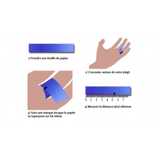 Mesurez simplement votre doigt avec un mètre ruban ou utilisez une ficelle que vous reportez sur une règle.