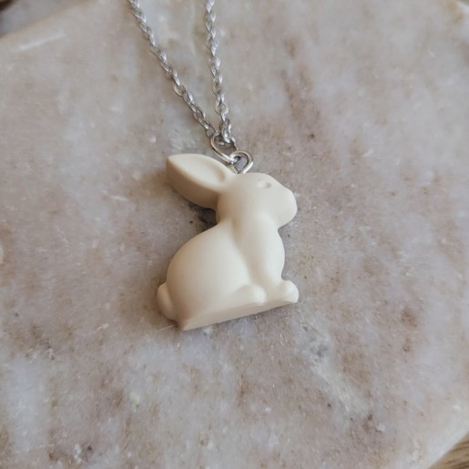 Craquez pour ce pendentif mini lapin en chocolat blanc en résine, une création gourmande et originale imaginée pour la collection de Pâques.