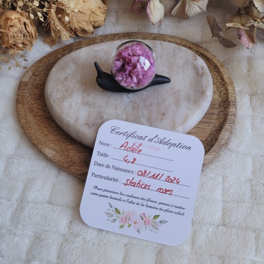 MADY – Petit escargot décoratif en résine avec inclusion de fleurs séchées et végétaux.