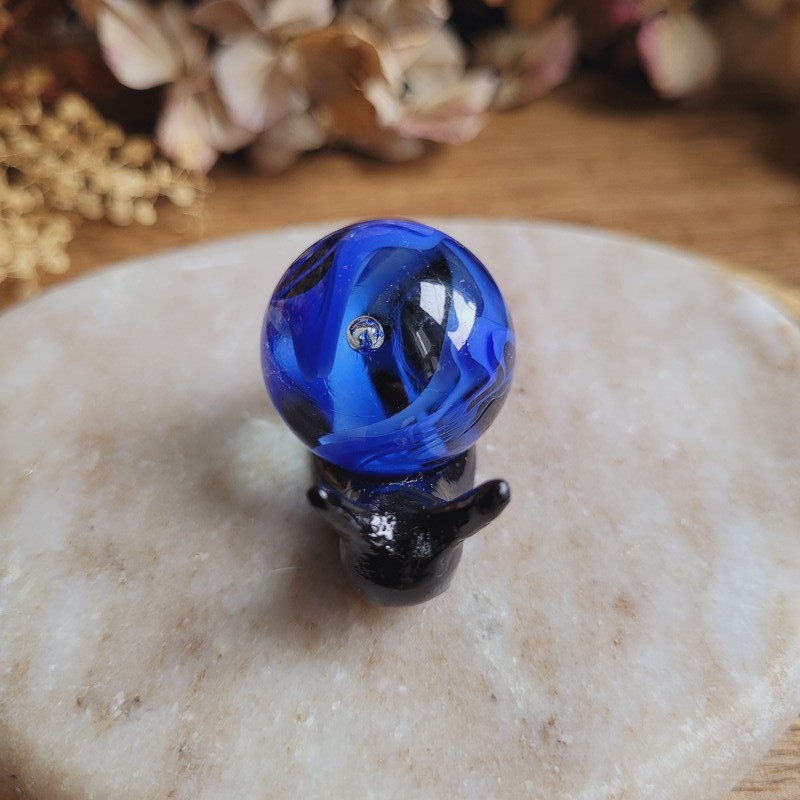 • Matériaux : Résine noire brillante et bille en verre