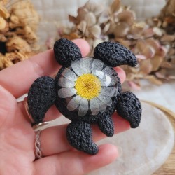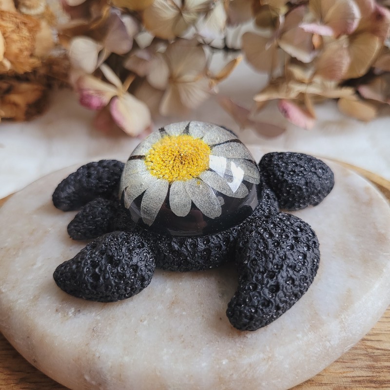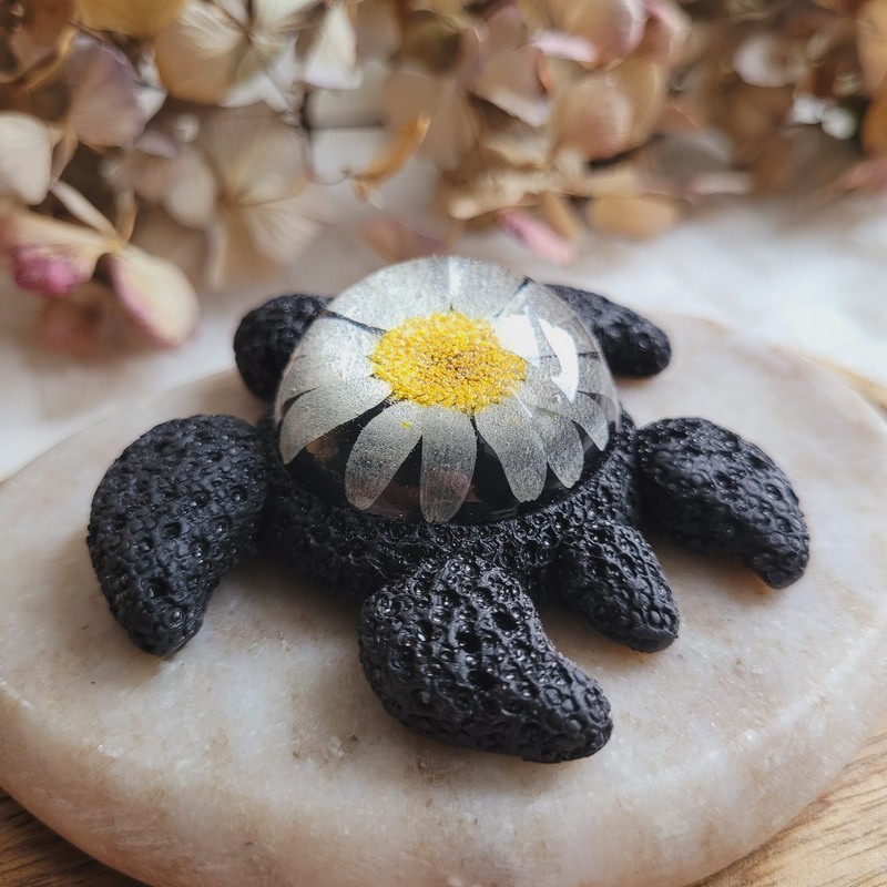 MARGUERITE – Figurine Tortue en Résine avec Fleur Séchée de Marguerite