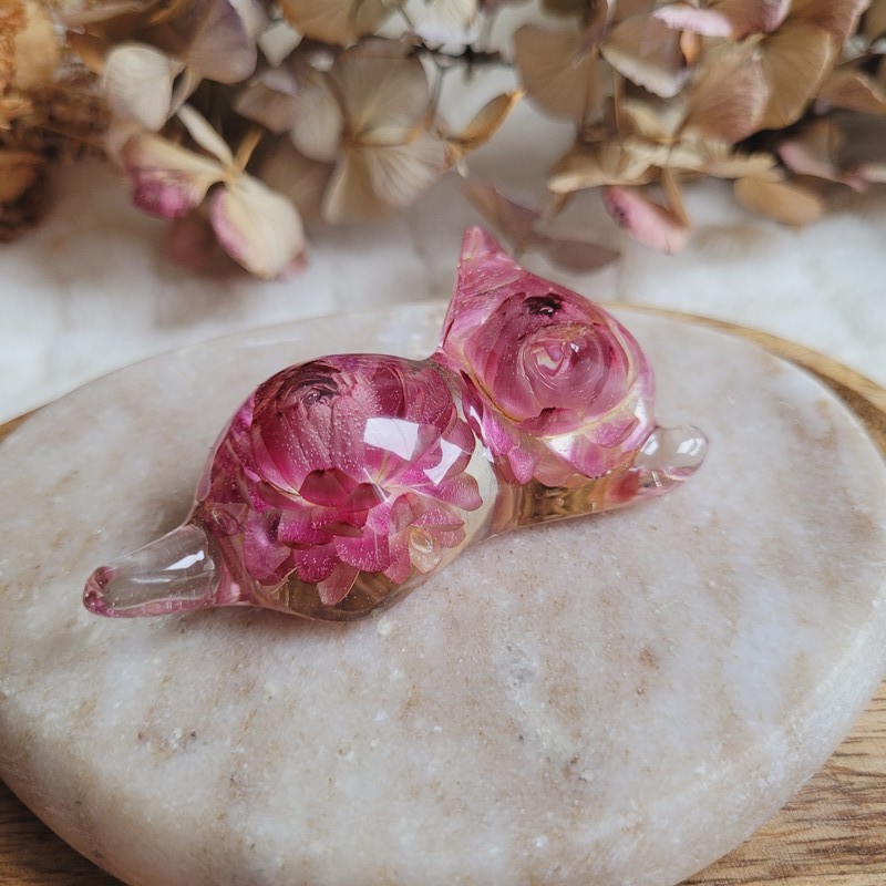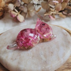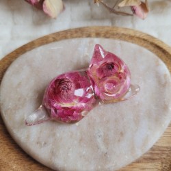 Ajoutez une note de nature, de poésie et de délicatesse à votre décoration avec la figurine chat FREYJA en résine et fleurs séchées.