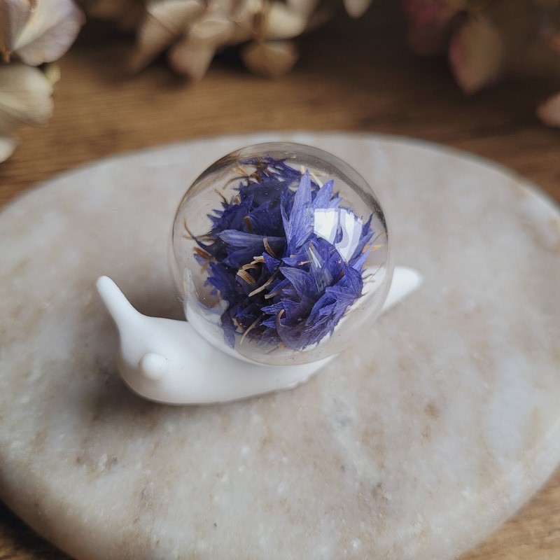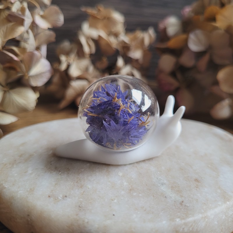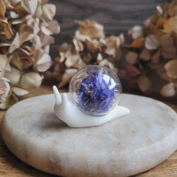 MATTEO – Petit escargot décoratif en résine avec inclusion de fleurs séchées.