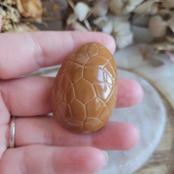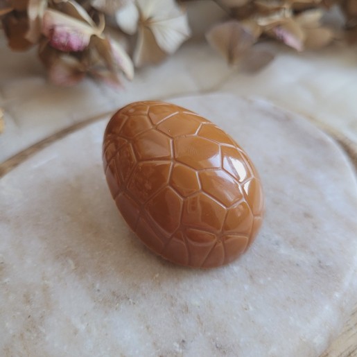 • Design : œuf en chocolat dulcey réaliste (trompe-l’œil)