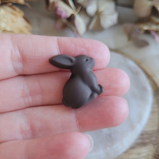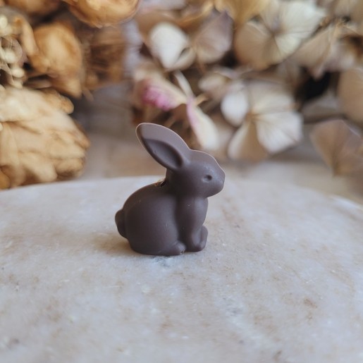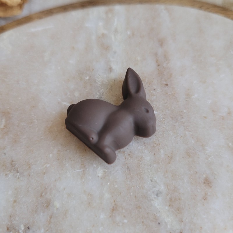• Design : mini lapin en chocolat noir réaliste (trompe-l’œil)