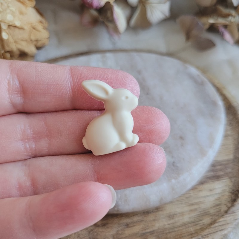 • Design : mini lapin en chocolat blanc réaliste (trompe-l’œil)