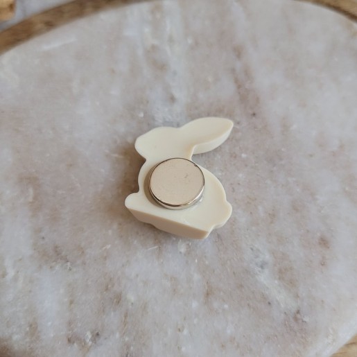 Ajoutez une touche gourmande et festive à votre décoration avec ce magnet mini lapin en chocolat blanc en résine, spécialement imaginé pour la collection de Pâques.