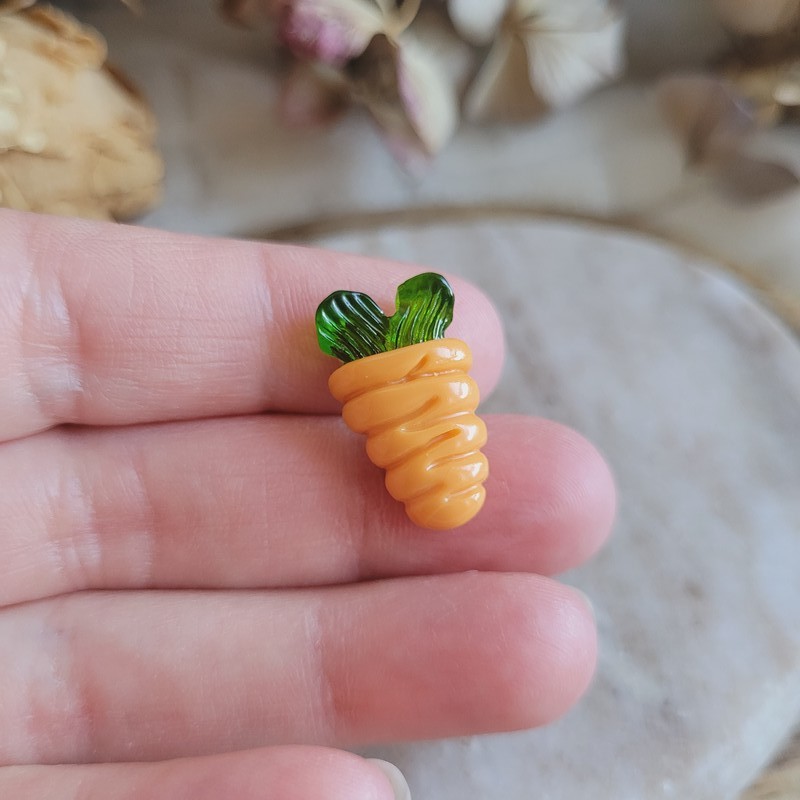 Entièrement fabriquée à la main dans mon atelier, cette petite carotte reproduit l’aspect d’une carotte fraîchement cueillie, avec un rendu réaliste et légèrement gourmand.