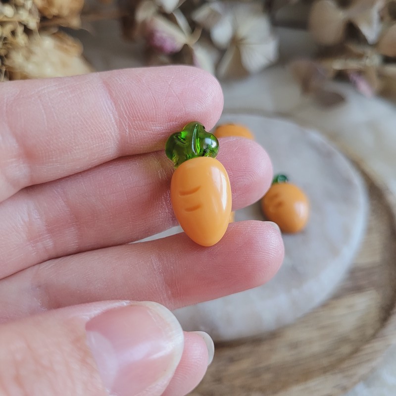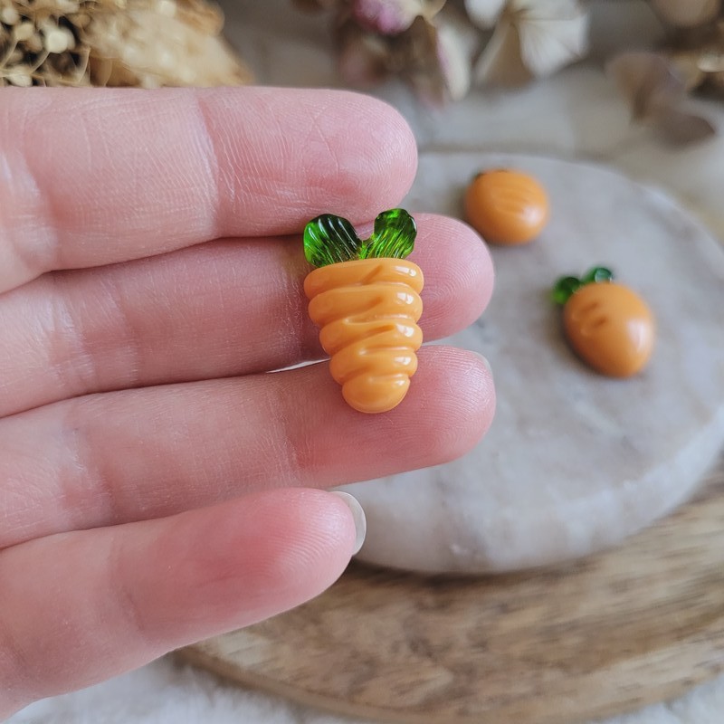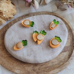 Chaque petite carotte est entièrement fabriquée à la main dans mon atelier et reproduit l’aspect de carottes fraîchement cueillies, avec un rendu réaliste et légèrement gourmand.