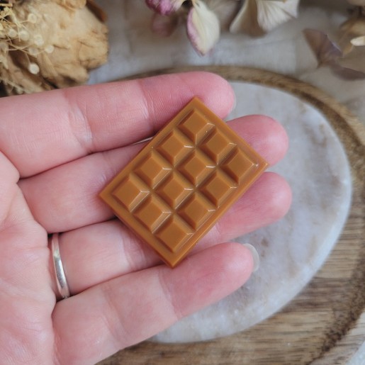 Apportez une touche gourmande et ludique à votre cuisine avec ce magnet tablette de chocolat dulcey en résine.