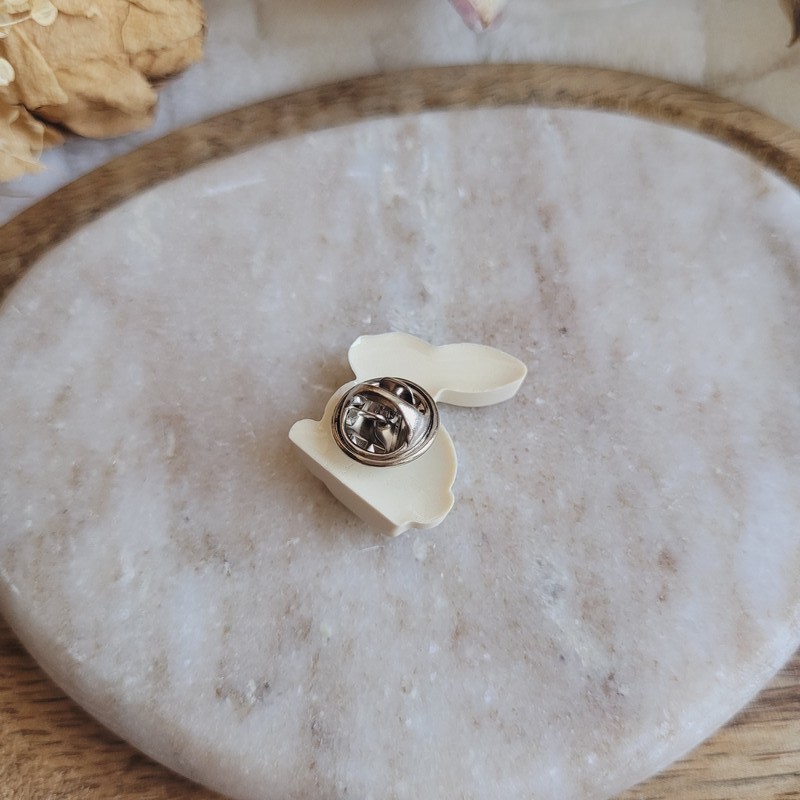 Ajoutez une touche gourmande et originale à votre tenue avec ce pin’s mini lapin en chocolat blanc en résine, imaginé pour célébrer Pâques autrement.