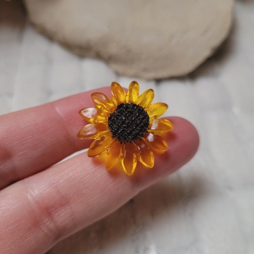 Faites rayonner votre frigo avec ce mini magnet en forme de tournesol, fabriqué à la main en résine.