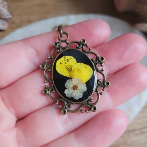• Fleurs : Fleur de Bouton d'Or et Spirée, cultivées dans mon jardin et séchées par mes soins.