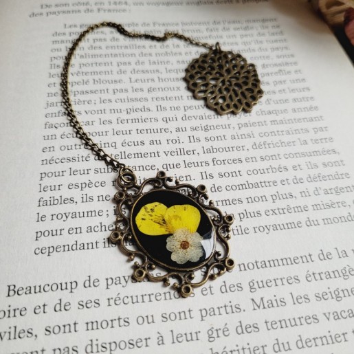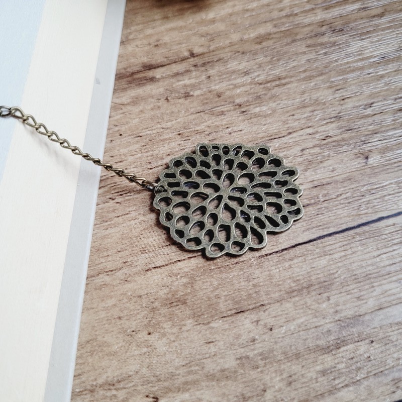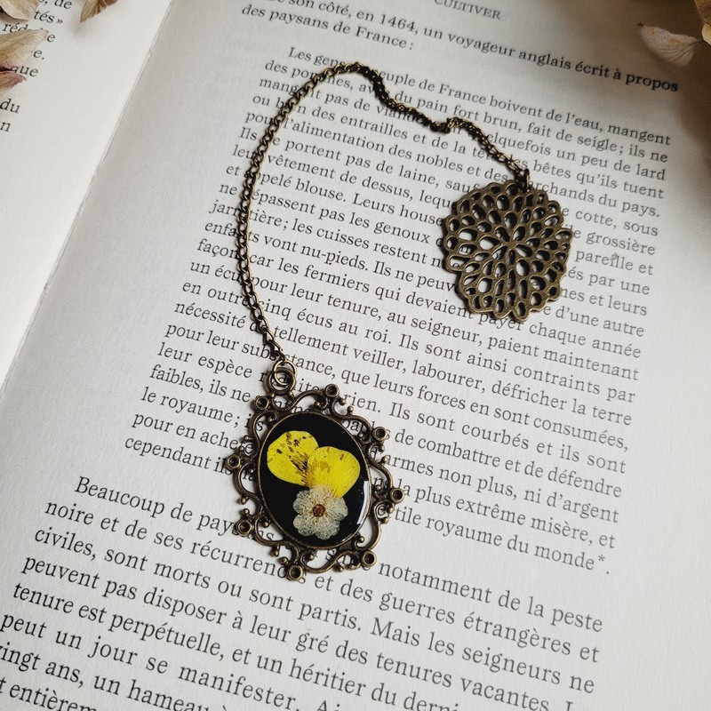 Ce bijou pour livre allie délicatesse et style grâce à son pendentif fleuri.