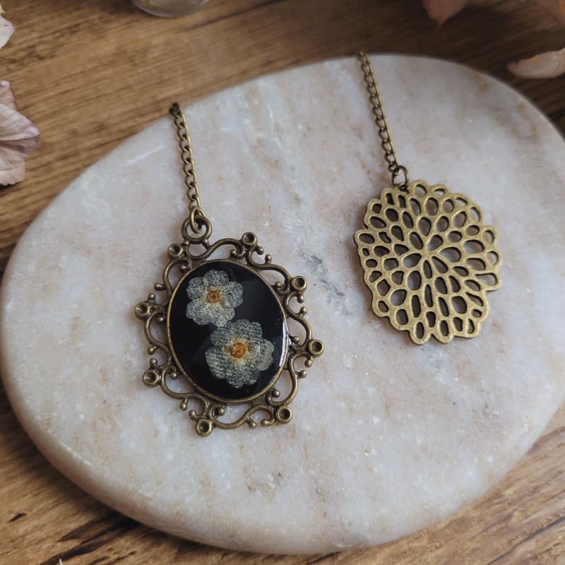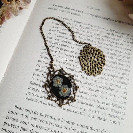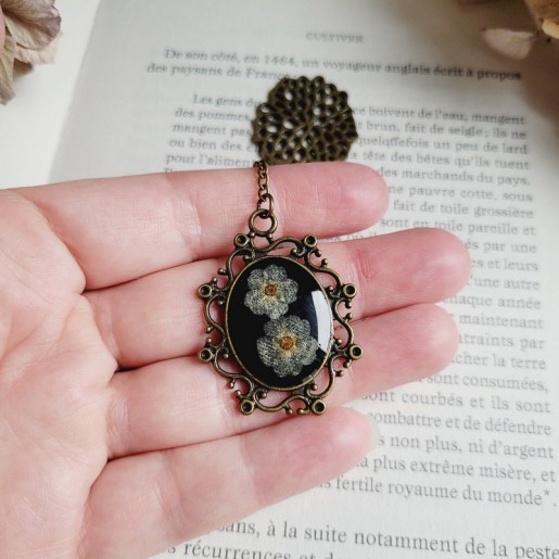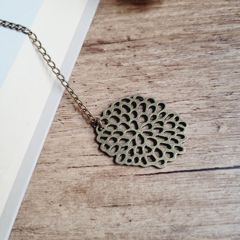 Ce bijou pour livre allie délicatesse et style grâce à son pendentif fleuri.