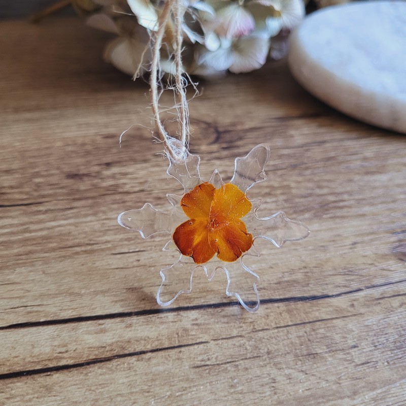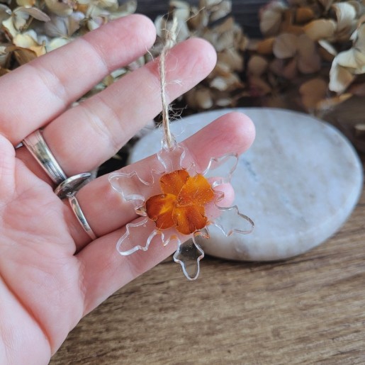 Cette suspension flocon est parfaite pour compléter votre décoration de Noël ou pour offrir un cadeau artisanal et unique à vos proches. Apportez une touche de nature à votre sapin avec cette pièce faite main.