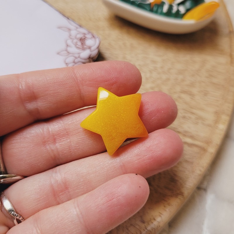 • 12 pions en résine (6 par forme), étoiles et sapins – faits main